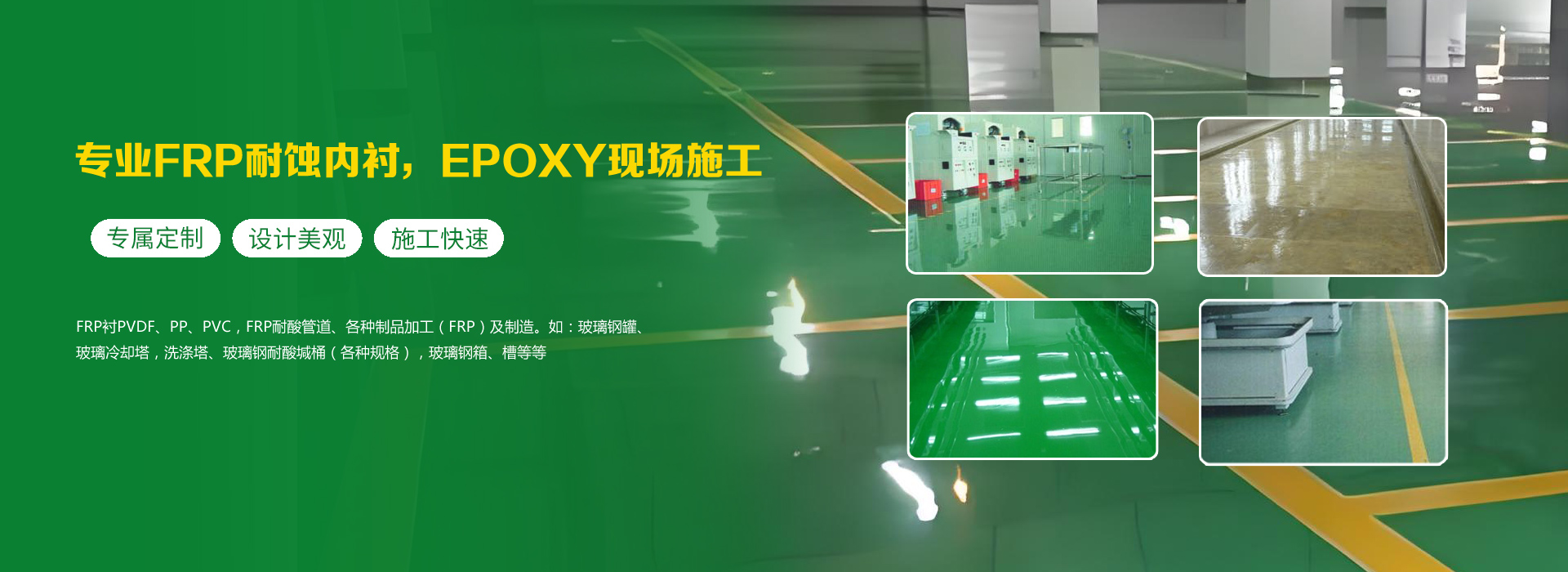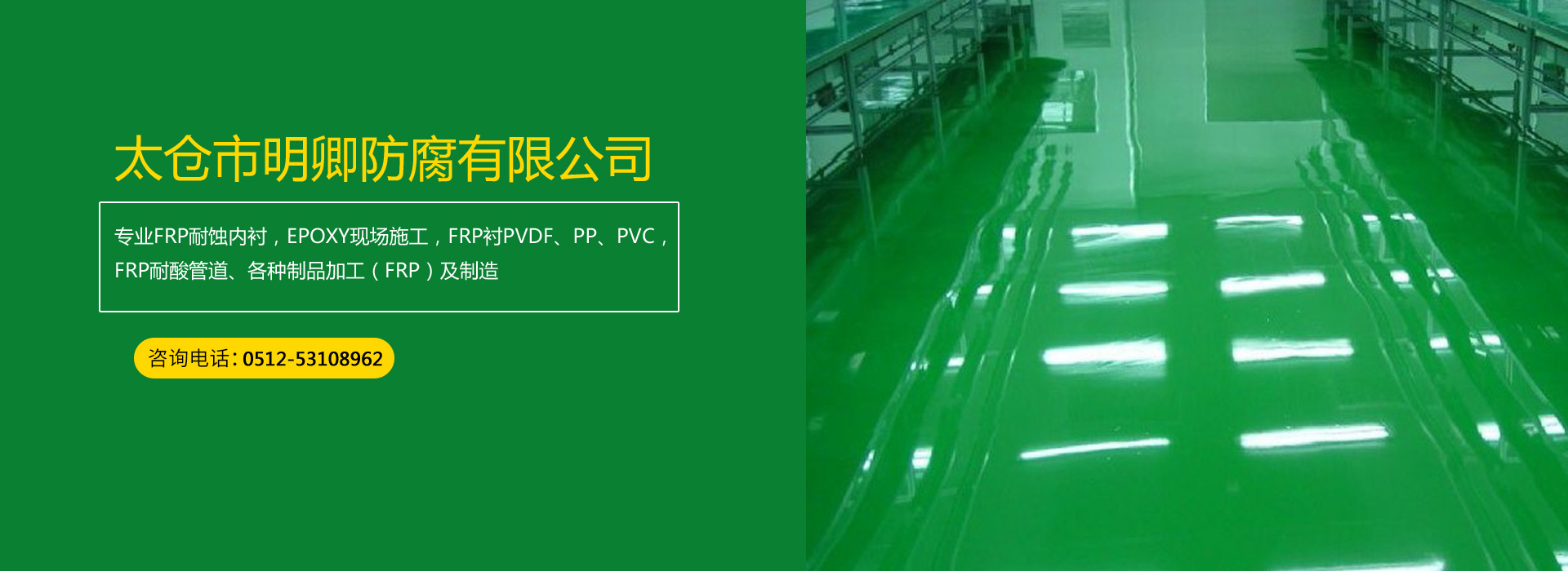 太倉明卿玻璃鋼防腐有限公司是于2010年5月經太倉市工商局注冊成立具有獨立法人資格的企業實體。 (一)、專業FRP耐蝕內襯,EPOXY現場施工,FRP襯PVDF、PP、PVC,FRP耐酸管道、各種制品加工(FRP)及制造。如:玻璃鋼罐、玻璃冷卻塔,洗滌塔、玻璃鋼耐酸堿桶(各種規格),玻璃鋼箱、槽等等。 (二)、防腐系列:工廠、車間的設備、管道、酸池等及其它的防腐及防腐工程。我公司已為大型電子廠、液晶晶片廠、化工廠等大型企業提供FRP產品。